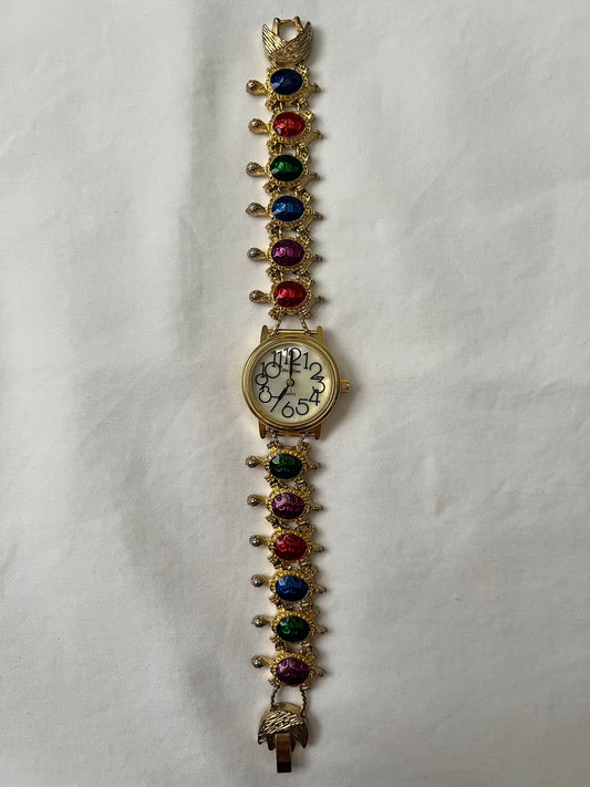 Extremely Rare 925 Silver Watch with Multi-Colored Jade Stones Accent