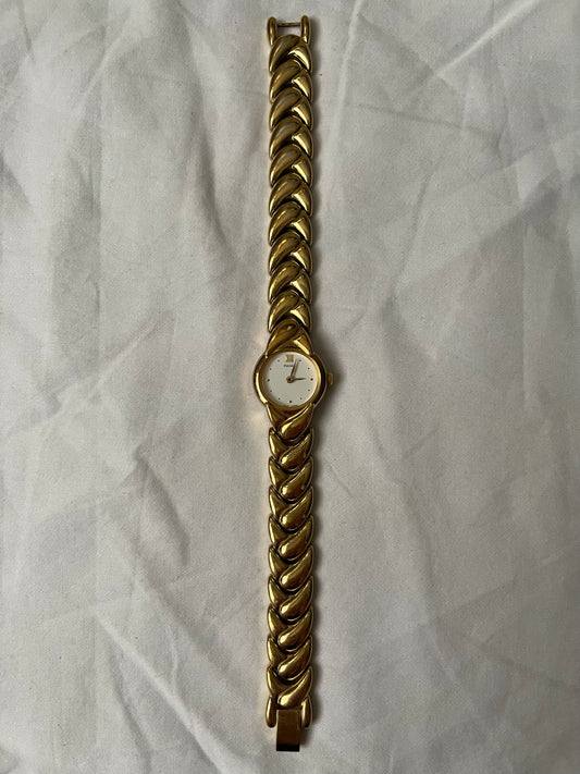 Beautiful Gold Tone Watch with Dainty Round Textured Dial