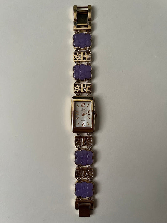 Astonishing Gold Tone Watch with Purple Jades Inlaid Band