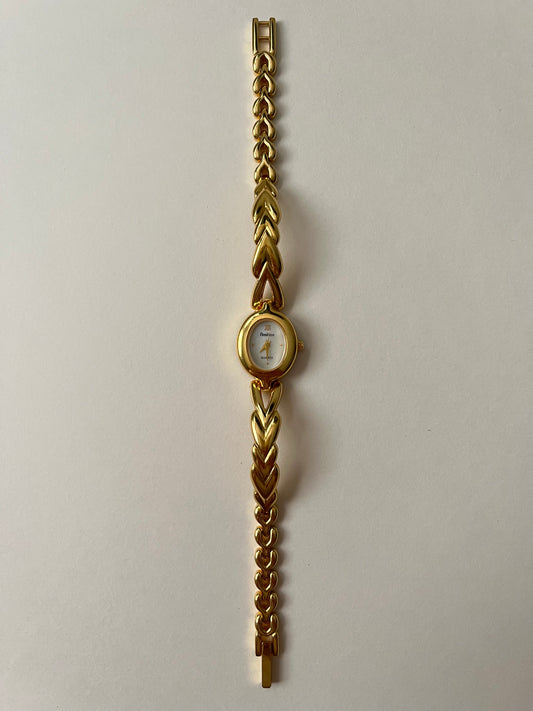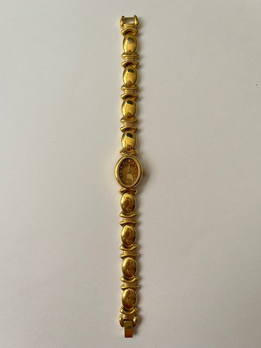 Dainty Gold Tone Watch with Oval Dial and Rhinestones Accent