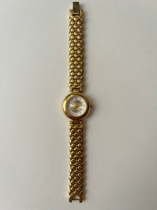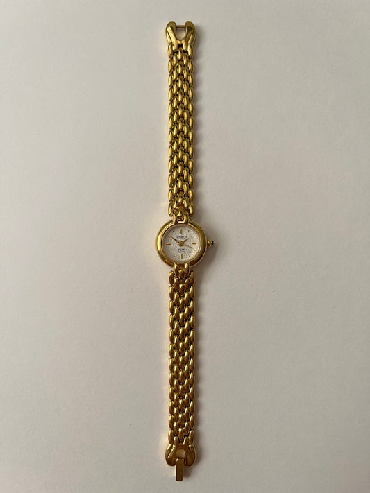 Beautiful Gold Tone Watch with Dainty Round Textured Dial