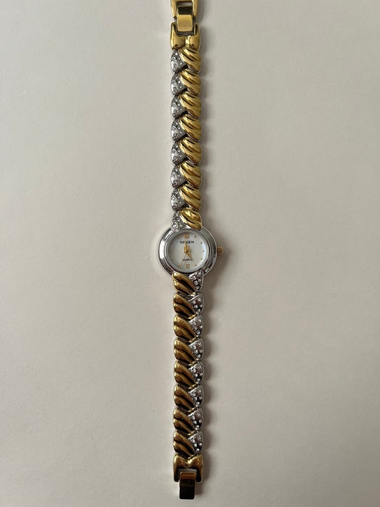 Extremely Rare Dainty Two Toned Seiko Watch with Heart Shaped Links