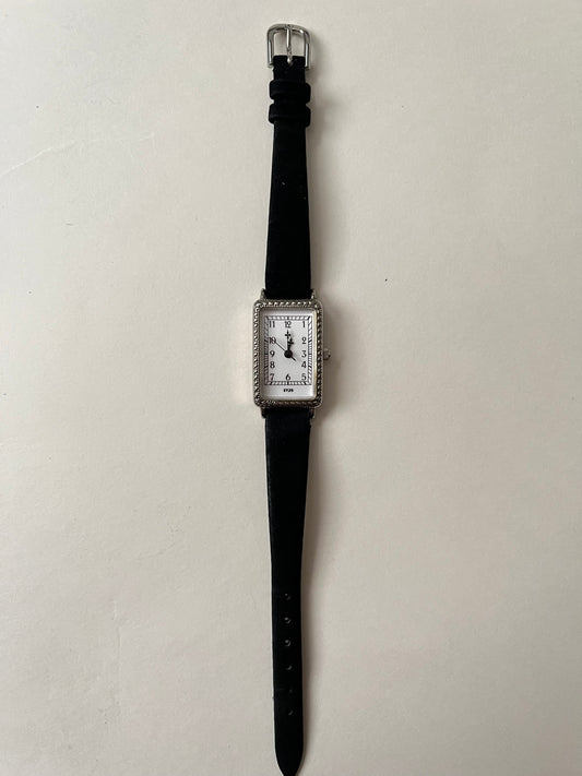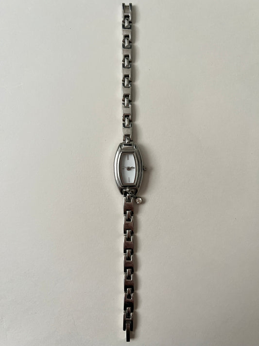 Dainty Silver Tone Watch with Tiny Charm and Rectangular Dial
