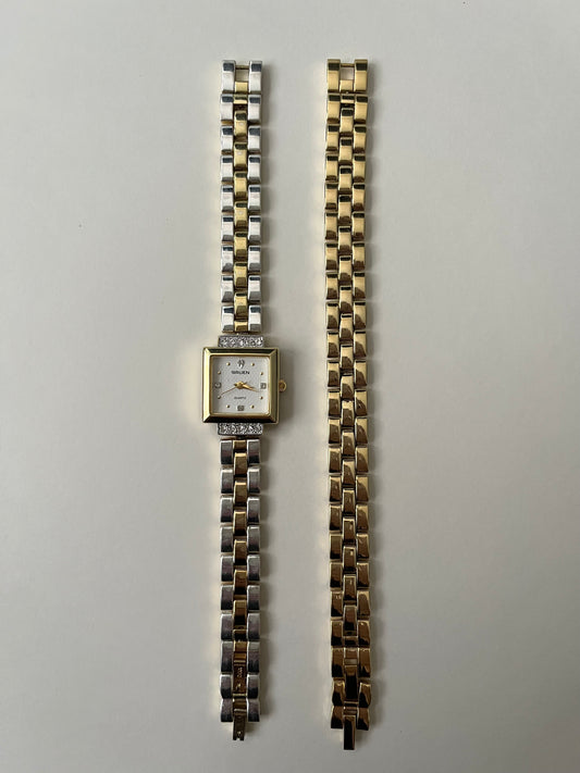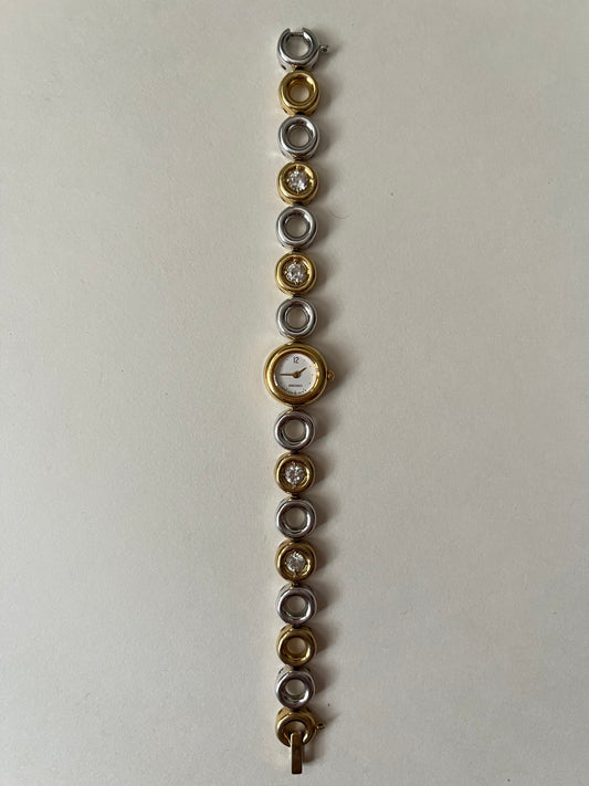 Very Rare and Gorgeous Two Toned Seiko Watch with Small Round Dial and Rhinestones Accent