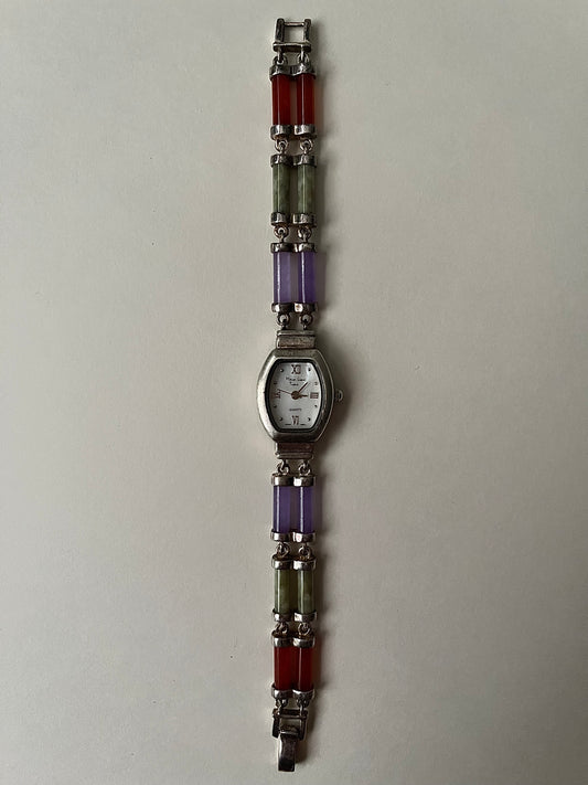 Extremely Rare 925 Silver Watch with Multi-Colored Jade Stones Accent