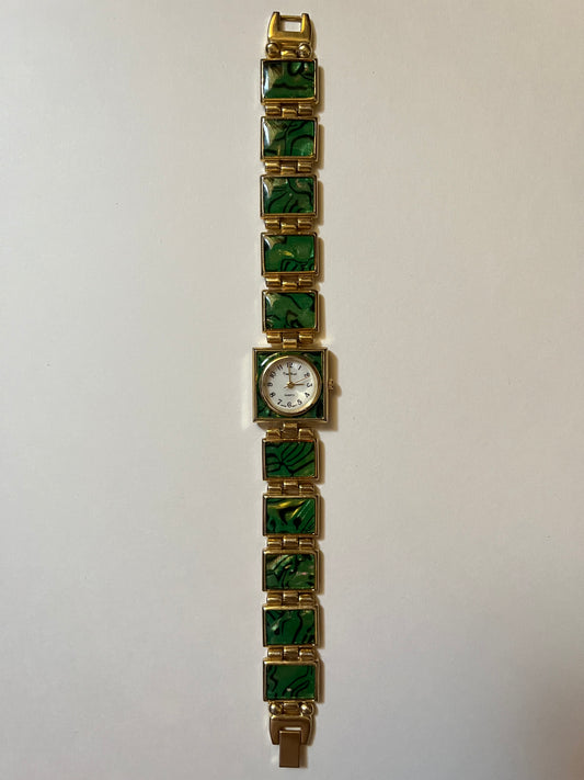 Vintage Gold Tone Watch with Abalone-Like Accented Band