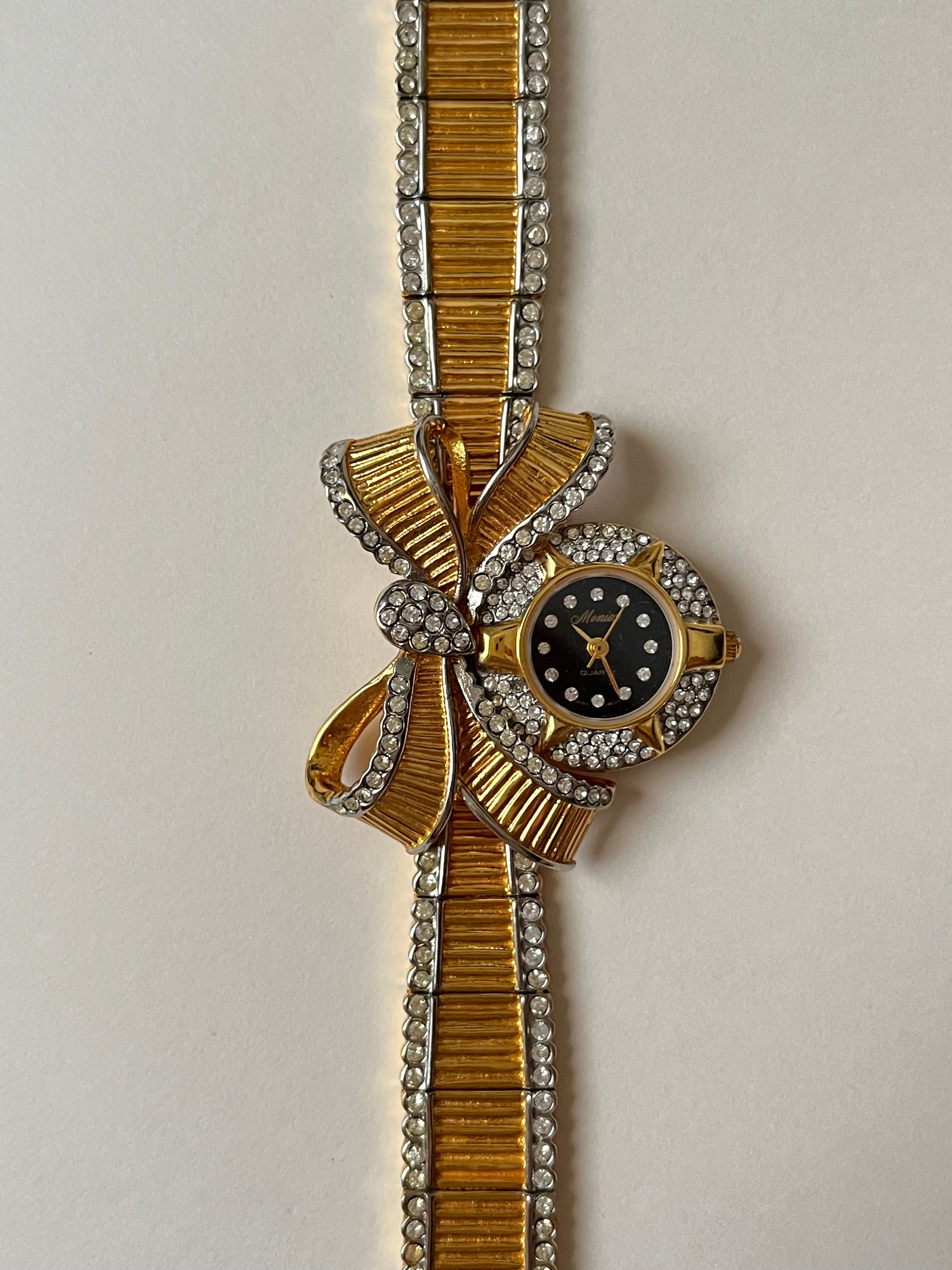 Absolutely Breathtaking Vintage Gold Tone Watch with Statement Bow Design