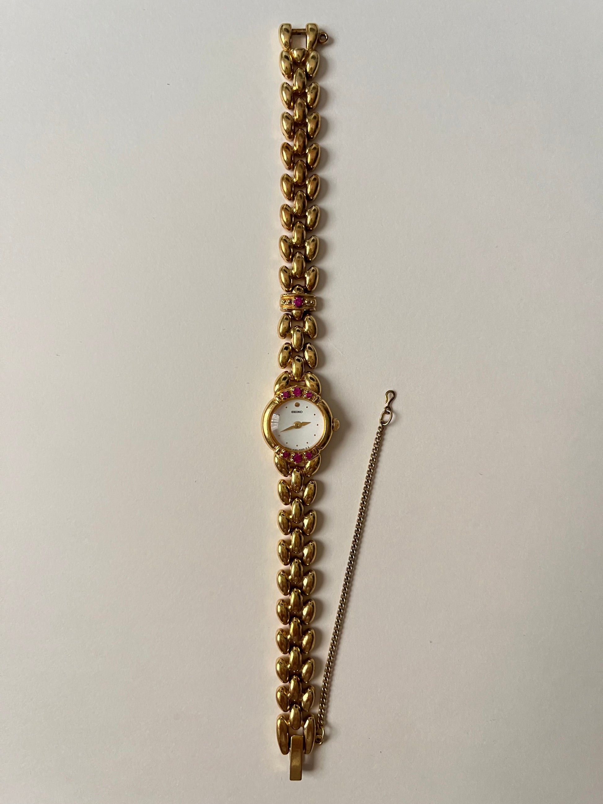 Extremely Rare and Astonishing Gold Tone Seiko Watch with Real Rubies Accent