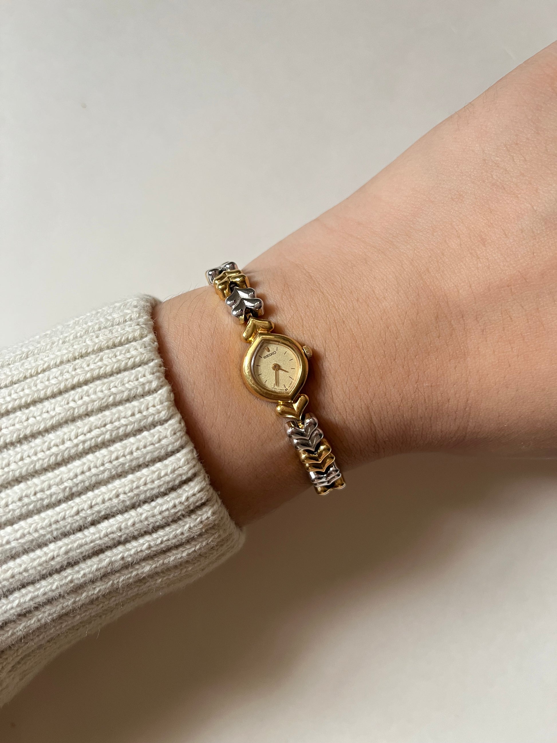 Extremely Rare Dainty Two Toned Seiko Watch with Heart Shaped Links