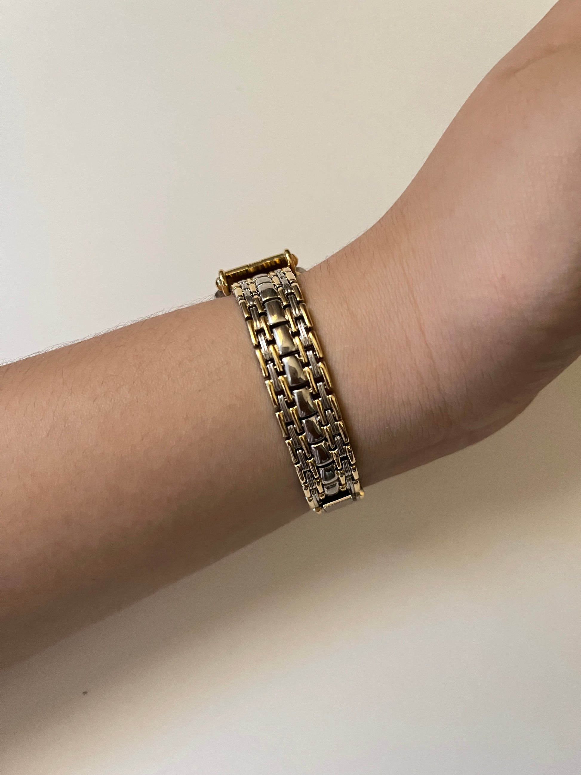 - Adjustable to a smaller wrist size by removing metal links