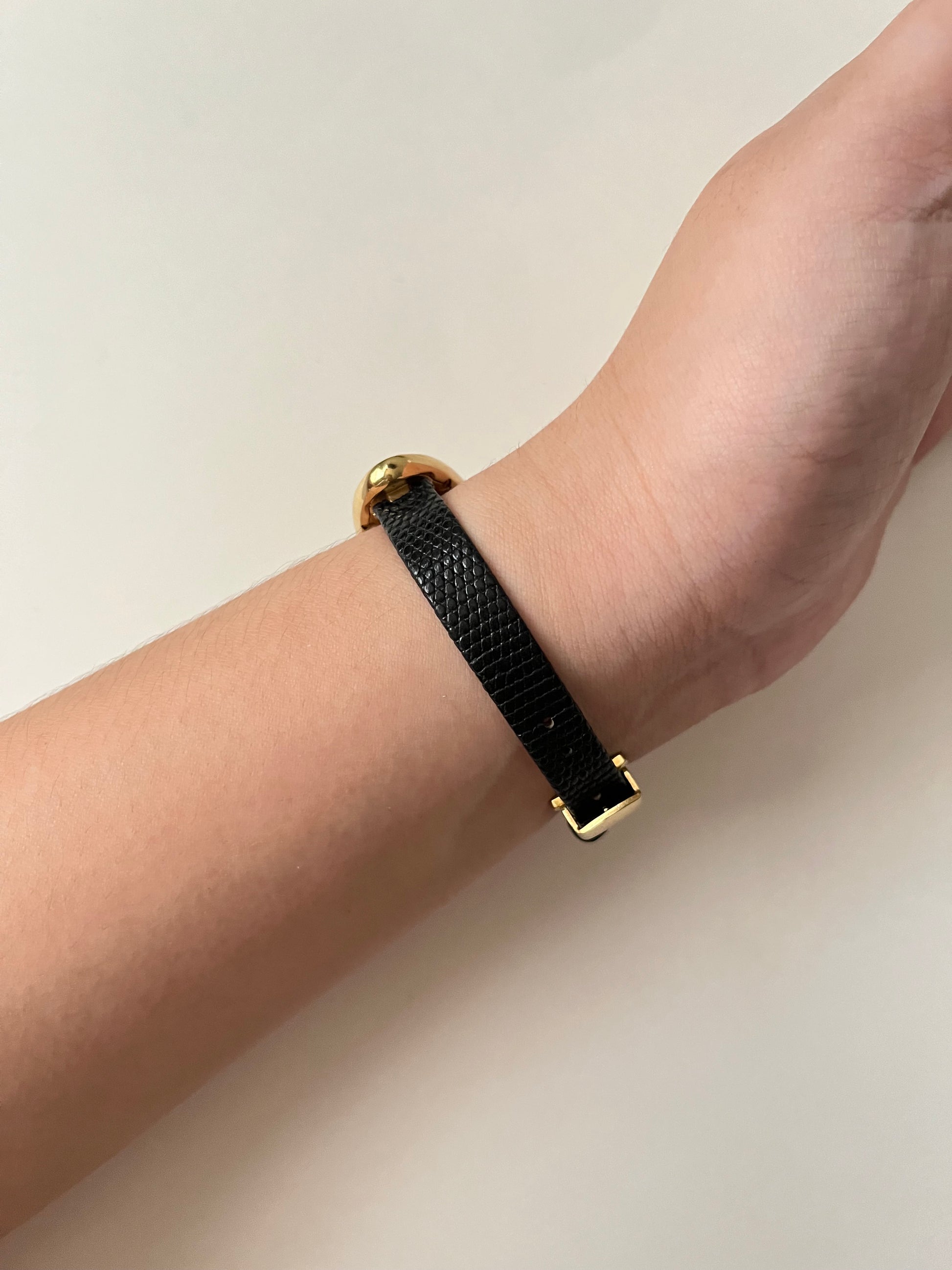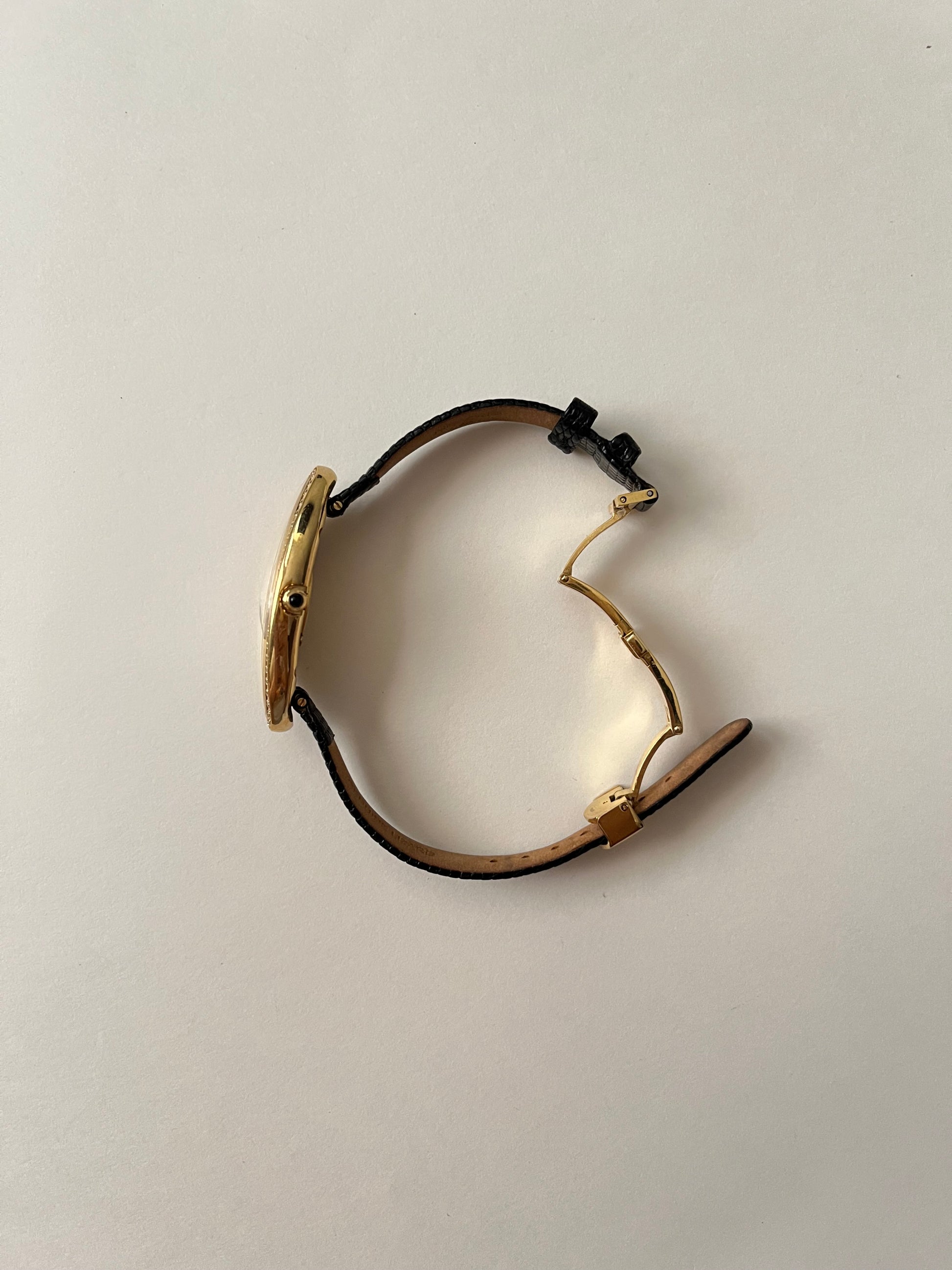 Extremely Rare Gold Tone Diamond Case Croton Leather Watch (A Cartier Baignoire Allongée Homage)