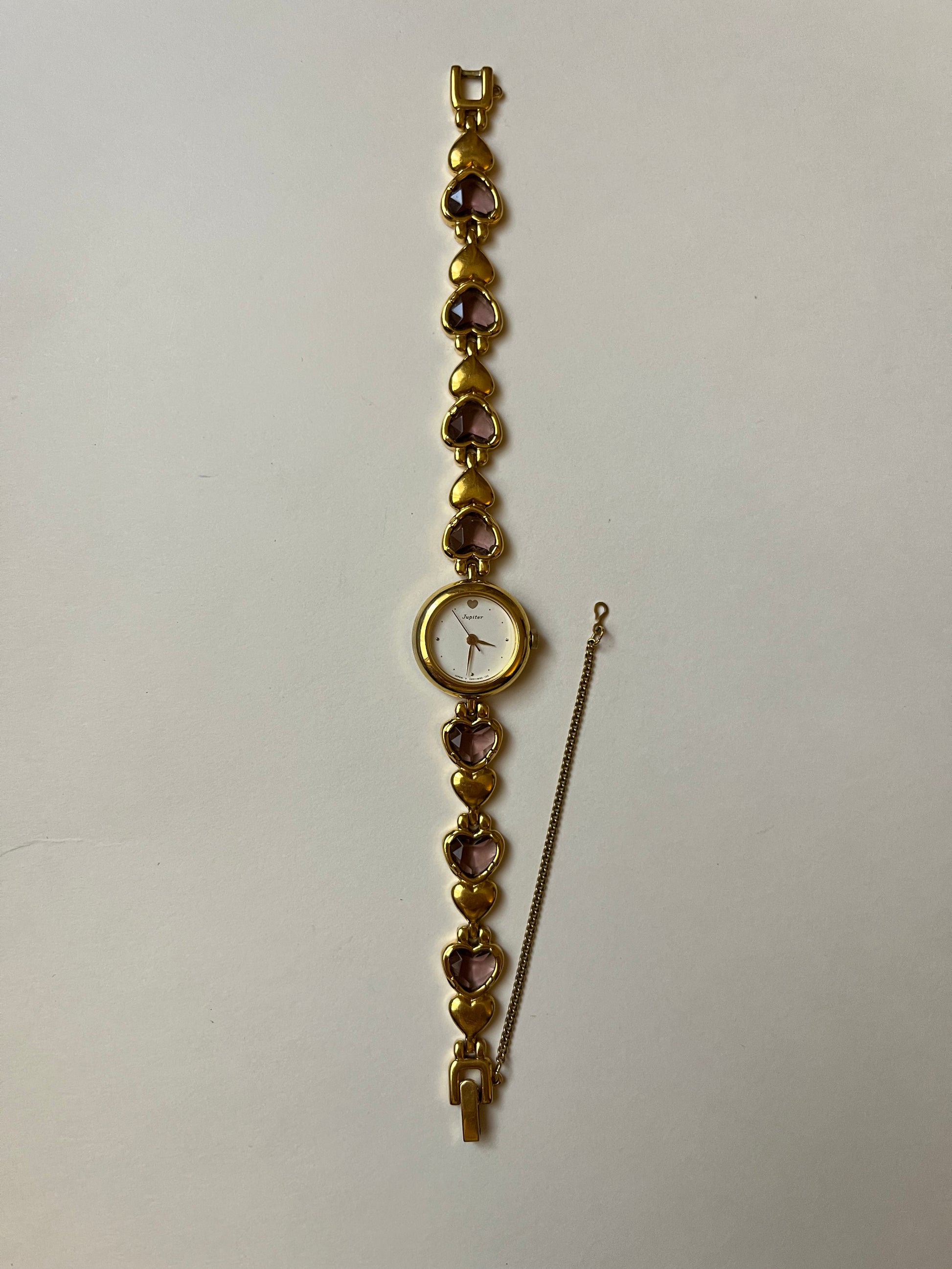 Extremely Rare Gold Tone Watch with Purple Crystals and Heart Shaped Links