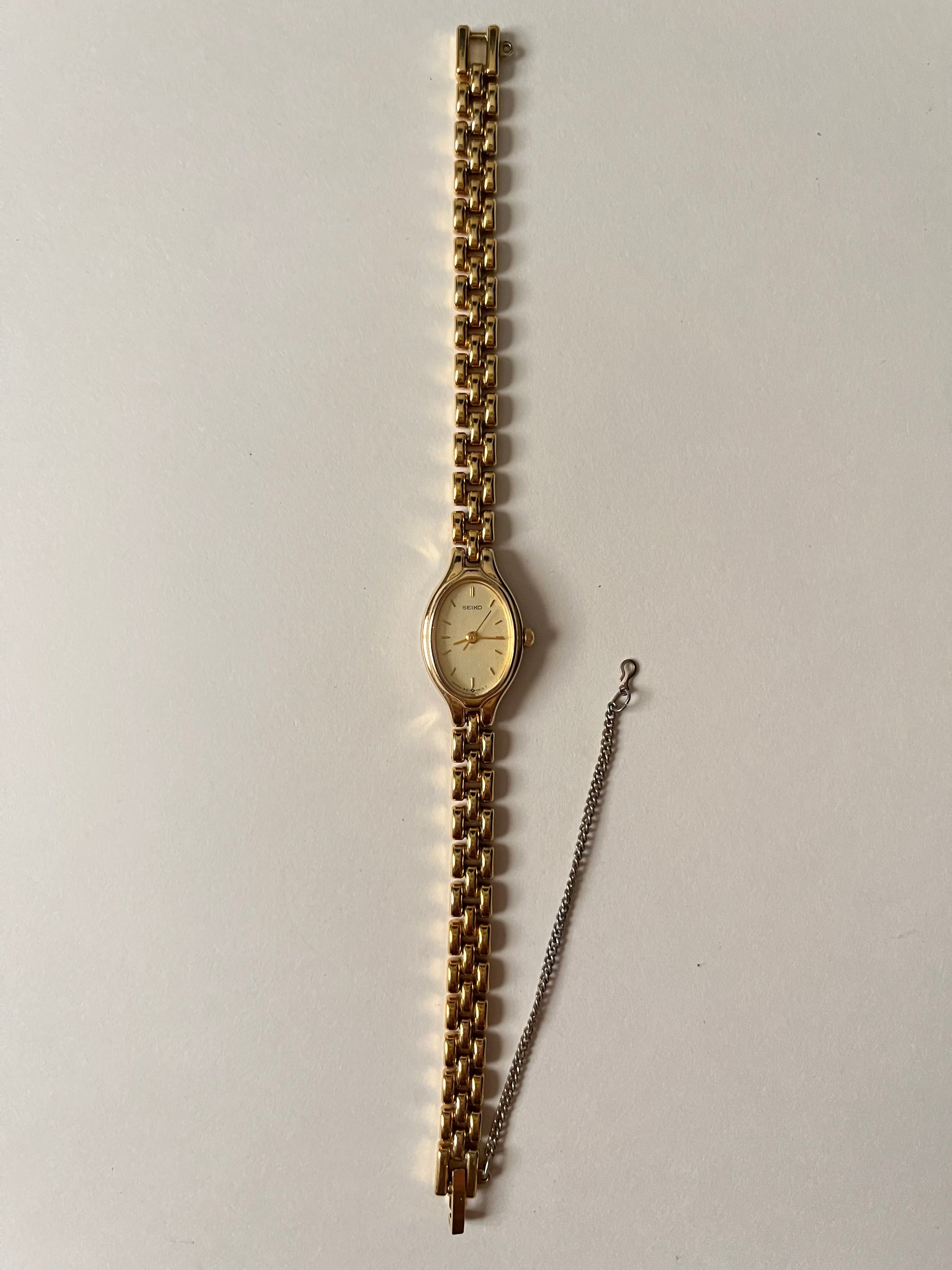 Lovely Dainty Gold Tone Seiko Watch with Oval Dial