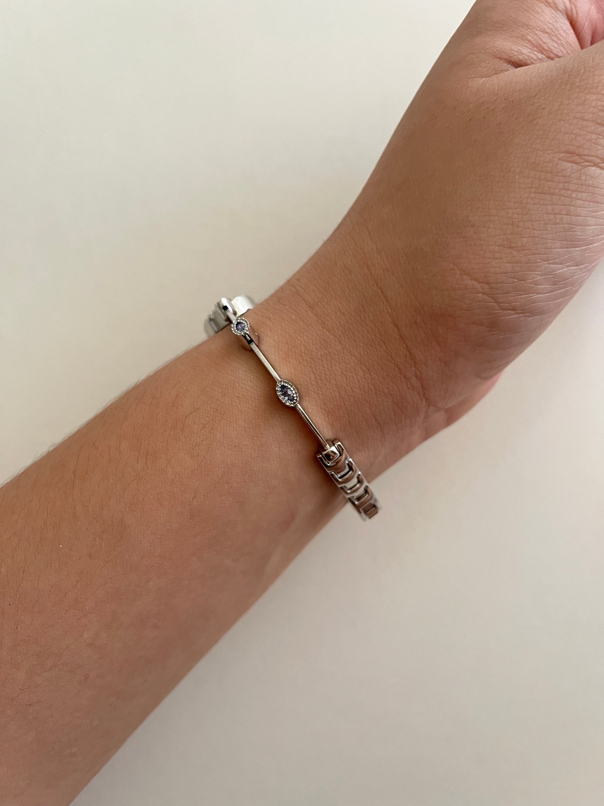 Very Dainty Silver Tone Swiss Watch with Real Diamond and Light Purple Stone Accents