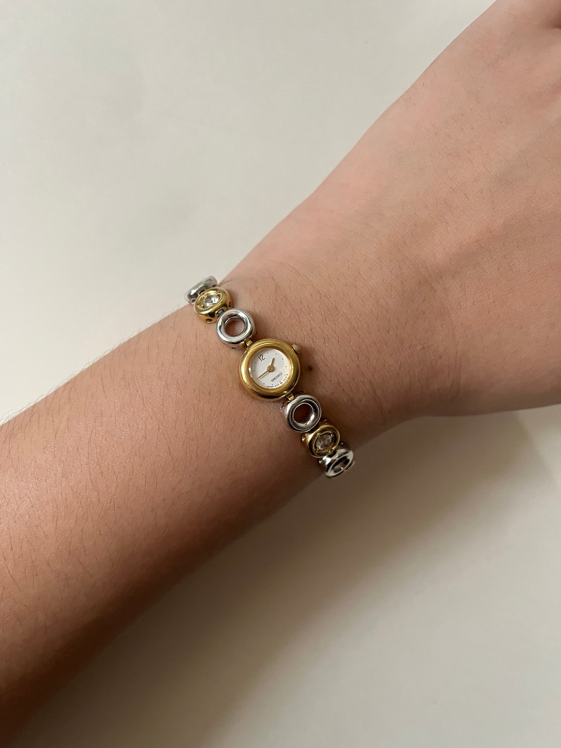 Very Rare and Gorgeous Two Toned Seiko Watch with Small Round Dial and Rhinestones Accent